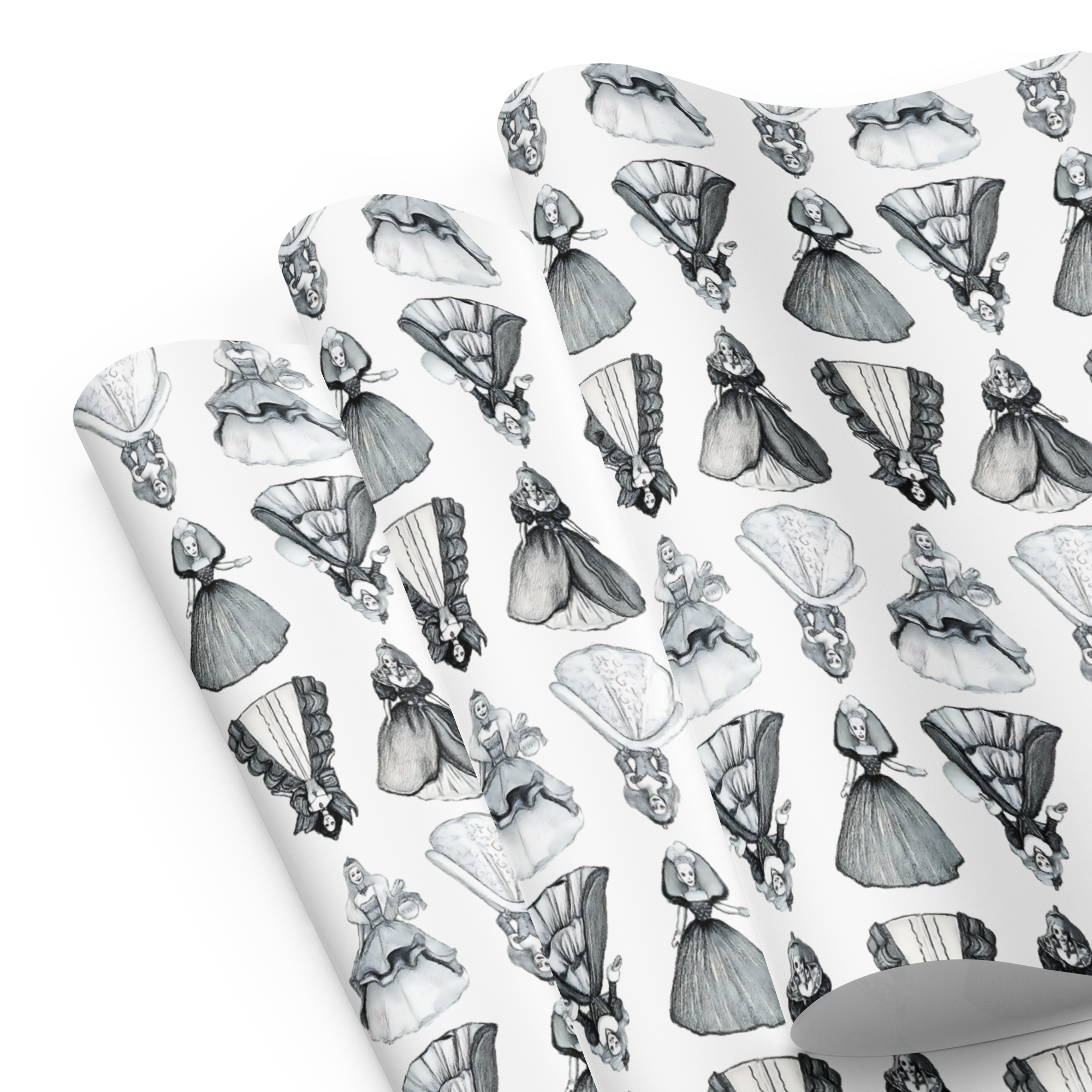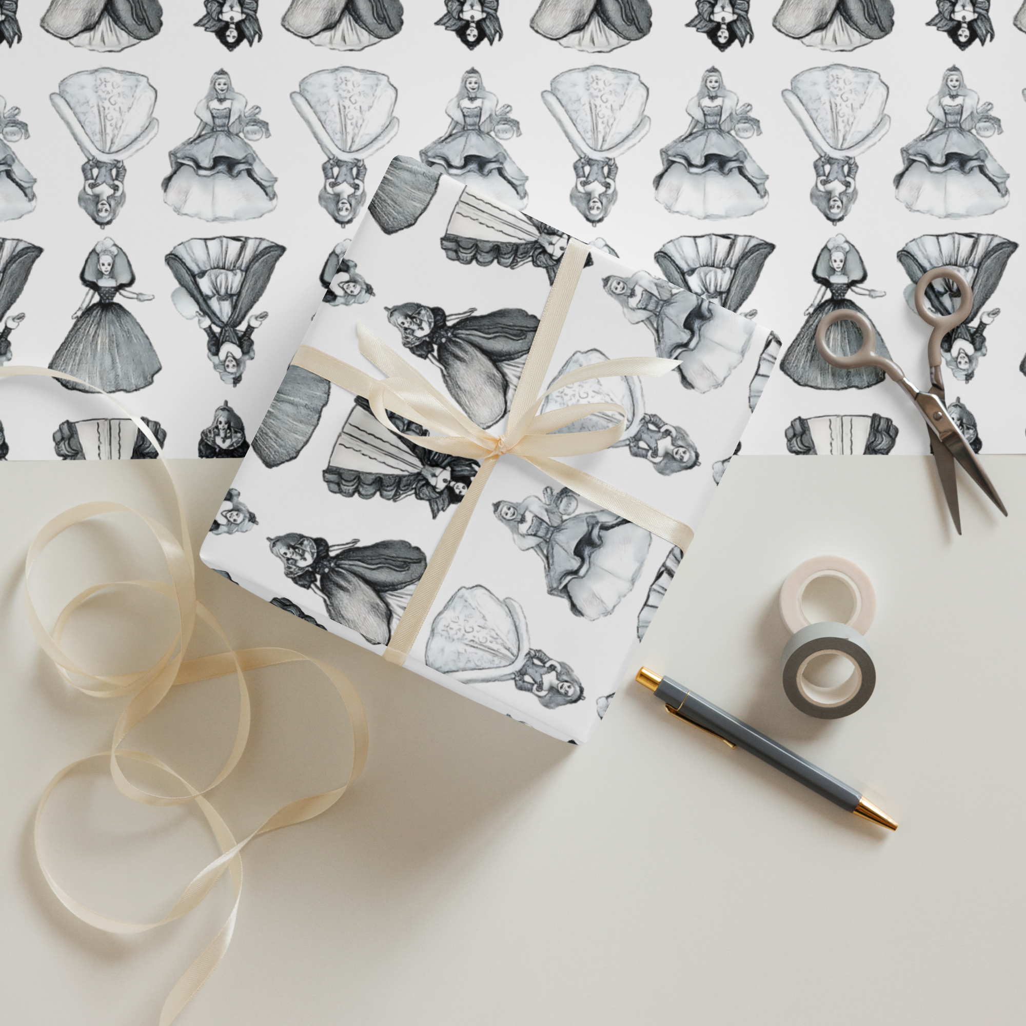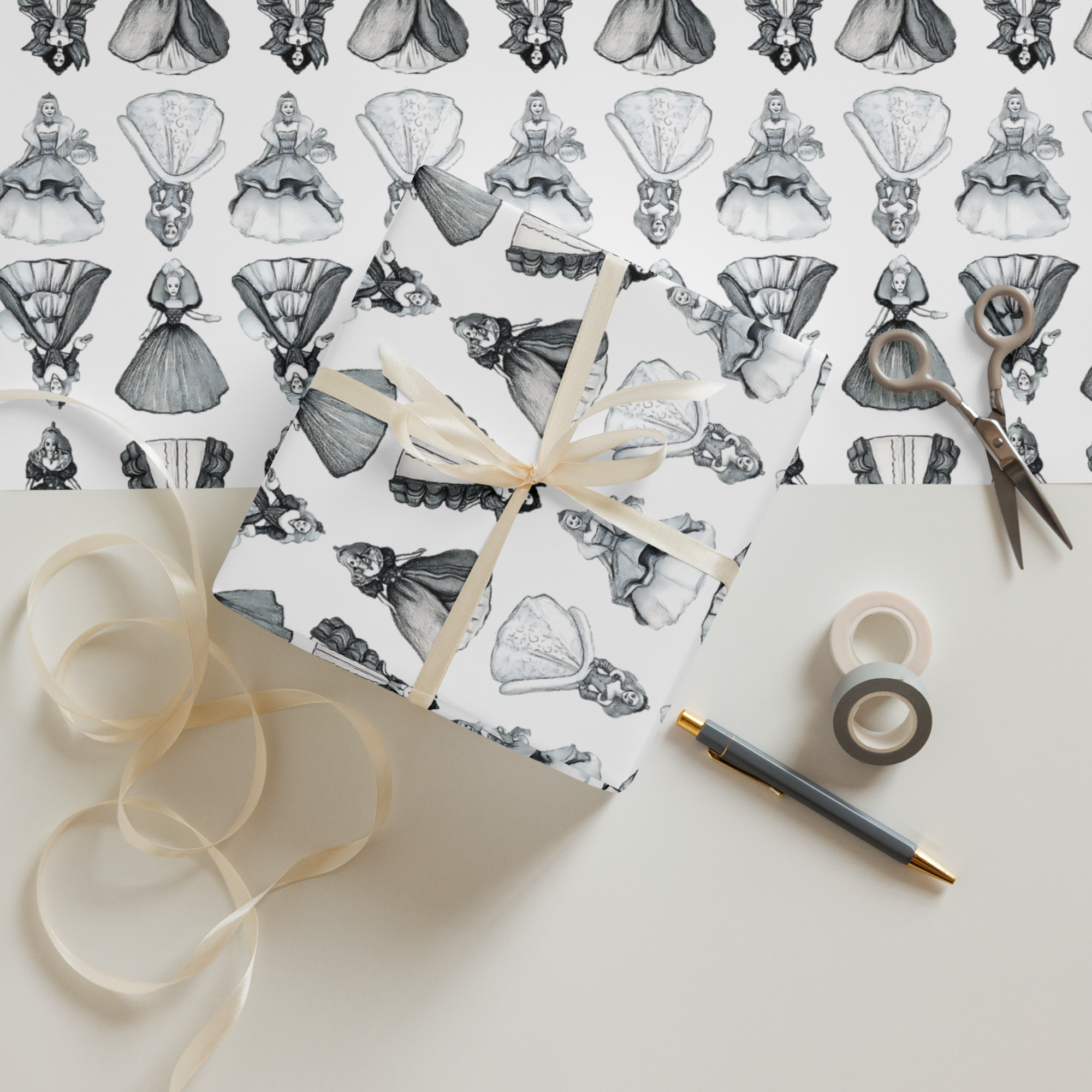 Our Dressed to Sleigh wrapping paper takes inspiration from the iconic Holiday Barbie ornaments of the ‘90s, all glitter, glamour, and that unmistakable “don’t touch, she’s collectible” energy.